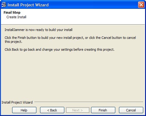 Now that you have gone through all the steps, you're ready to create your install! Click the finish button, and InstallJammer will create your install and open it to get you started.