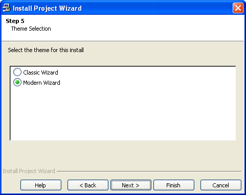 Step 5 gives you a list of install themes to choose from. The default theme is the Modern Wizard theme.
